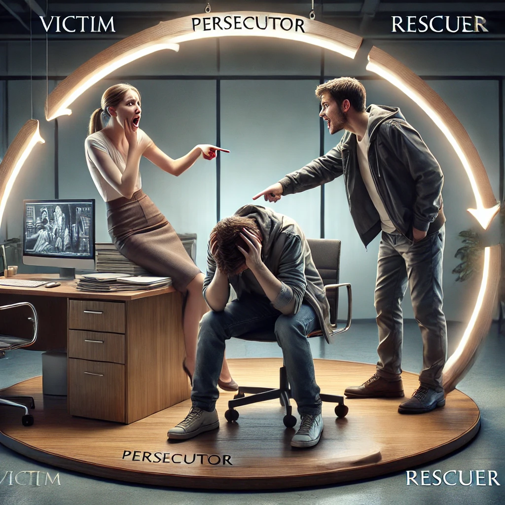 예를 들어볼게요. A는 항상 일이 많고 힘들다고 하소연해요(피해자). B는 왜 그렇게 무능하냐며 지적해요(가해자). C는 A를 도와주려 애쓰죠(구조자). 그런데 시간이 지나면 C는 지치고, A는 C에게 의존하고, B는 짜증을 내요. 어느 순간 C가 피해자가 되기도 해요. 이런 식으로 역할이 계속 뒤바뀌며 상황은 꼬이게 돼요. 🤯