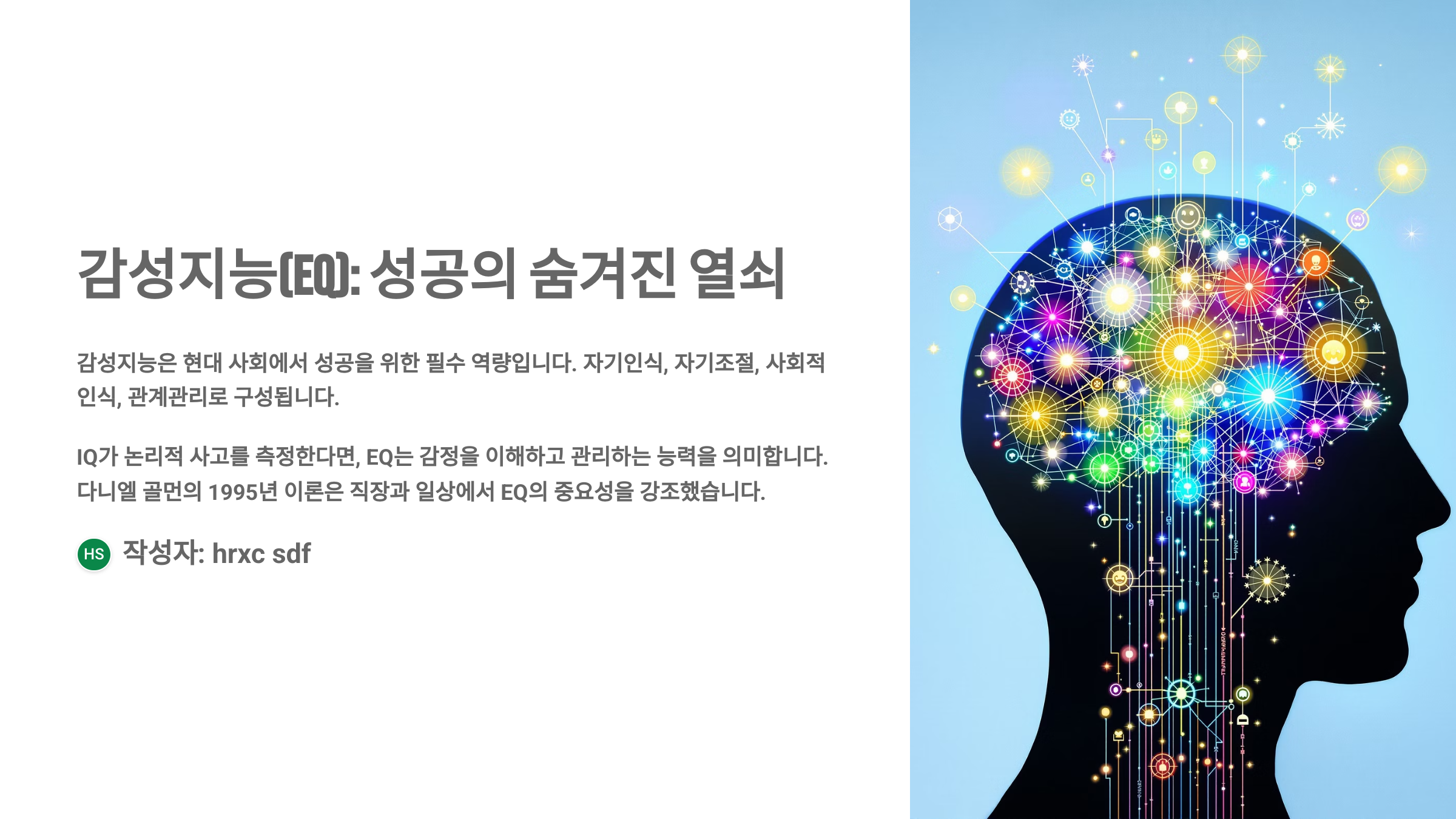 EQ(감성지능)는 단순히 감정을 잘 다루는 능력만을 뜻하지 않아요. 타인의 감정을 공감하고, 상황에 맞게 대처하며, 인간관계를 조율하는 데 필요한 매우 중요한 역량이에요. 요즘 같은 시대에는 IQ보다 EQ가 더 결정적인 성공 요소로 떠오르고 있어요.